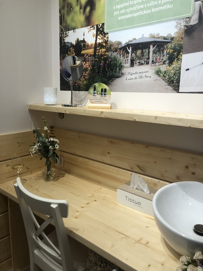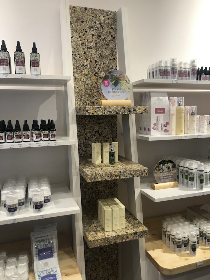 Pražský obchod se svým rozvržením a designem liší od prodejny na Vlčí Hoře, kde firma sídlí. Pracuje s konceptem „rozkvetlé louky pod krásnou košatou lípou“, jehož cílem bylo přenést do Prahy prvky Českého Švýcarska, přírody i aromaterapie.