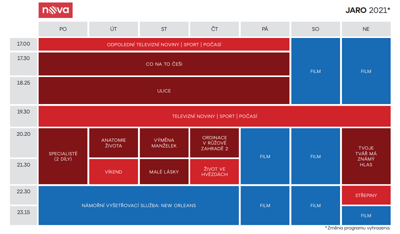 Bližší informace k programu TV Nova v letošním jarním vysílání si můžete prohlédnout v magazínu níže. Obsahuje i program tematických stanic TV Nova.