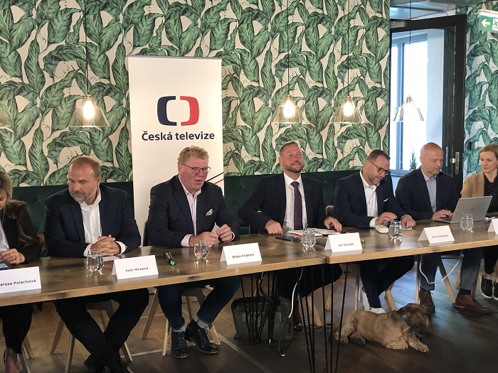 Nastupující generální ředitel České televize Jan Souček představuje na tiskové konferenci manažerský tým, s kterým chce naplňovat svou vizi směřování České televize. Svého mandátu se ujme od 1. října 2023.