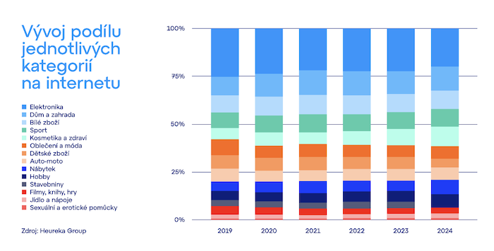 Během roku 2024 se na českém online trhu nejvýraznějšího růstu dočkaly kategorie spojené s udržitelností a volnočasovými aktivitami. Největšími „skokany“ roku se staly: solární příslušenství (+835 %), cyklistické kraťasy (+694 %), solární sestavy (+604 %), dětský zahradní nábytek (+562 %), kávoviny a náhražky kávy (+474 %).