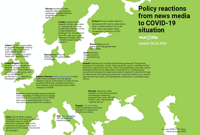 Mediální dům Czech News Center (CNC) uvedl, že žádosti některých obchodních partnerů přesunout kampaně na jiné období, řeší individuálně. U některých klientů naopak zájem o inzerci v tradičních médiích roste. „Jsme také připraveni flexibilně reagovat na výpadek distribuce komerčních letáků do schránek, který na svém twitteru avizovala Česká pošta 14. března. Alternativou k letákům do schránek jsou u nás vklady letáků do všech našich titulů, případně speciální 4stránkový formát v denících," říká CNC.