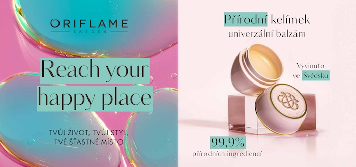 Švédská kosmetická společnost Oriflame startuje novou marketingovou kampaň „Reach your happy place“ („Tvůj život, tvůj styl, tvé šťastné místo – Oriflame“). Reaguje na současný životní styl a klade důraz na well-being i udržitelnost. Spolu s ní představuje i nový věrnostní program.