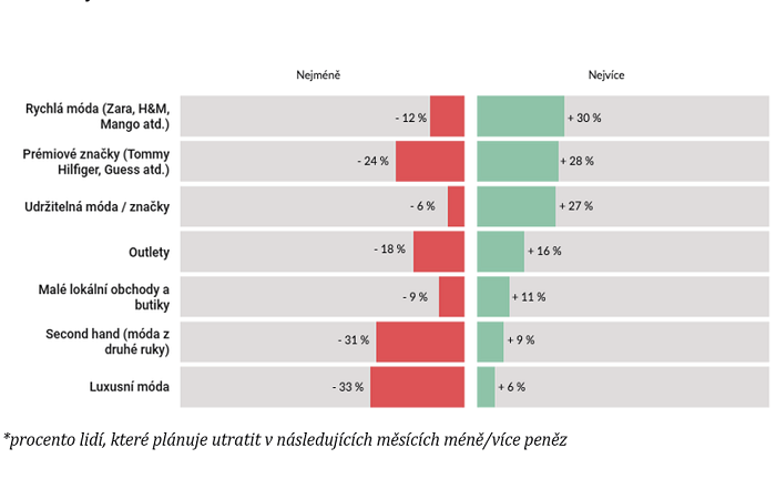 Celkem 54 % zákazníků podle průzkumu v uplynulých měsících utrácelo za módu na internetu více než v kamenných prodejnách, kde nakupovalo jen 17 % z nich. Zhruba 21 % pak nakupovalo stejně online jako offline. Online Češi nakupují hlavně proto, že je to pro ně pohodlné, 11 % z dotázaných se naučilo v e-shopech nakupovat v době pandemie a již u online nákupů zůstali. Pouze 1 % lidí nakupuje online z důvodu strachu před koronavirem.