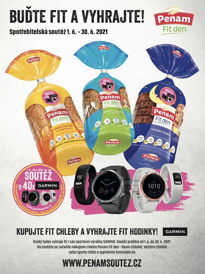Spotřebitelská soutěž poběží po celý měsíc. Zapojit se do ní může každý, kdo zakoupí jeden ze tří soutěžních chlebů Fit den, zadá číslo účtenky na web www.penamsoutez.cz a odpoví na tipovací otázku. Každý týden vyhraje nejpřesnější tip a každý týden Penam ocení 10 výherců. Soutěží se o fitness hodinky či náramky značky Garmin.