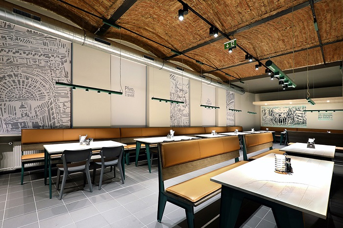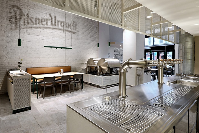 „Hlavní myšlenkou konceptu je potlačit okolní výrazové prostředky, aby mohla v interiéru vyniknout krásná zlatavá barva piva. Vzdušnost, tvarová čistota, důraz na kvalitní materiály a novátorské využití klasických tvarosloví z pivovarnictví vytváří moderní fúzi a unikátní vzhled. Soustředíme se také na příjemné osvětlení a světlost interiéru,“ popisuje na dotaz MediaGuru.cz Martin Troup, marketingový manažer značky Pilsner Urquell. V nabídce je kladen důraz především na správné čepování ležáku značky.