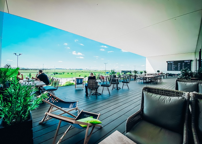 Interaktivní zábava v outletu je dále doplněna o zastřešenou vyhlídkovou terasu určenou k pozorování přistávajících letadel přilehlého Letiště Václava Havla. Na velkoplošné obrazovce s interaktivním informačním systémem bude možné najít detailní informace o daném letu nebo konkrétním stroji. Vizuální podívaná je obohacena i o live přenos komunikace mezi pilotem a řídící věží pražského letiště.