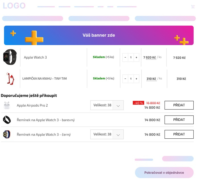 Z pohledu dat jde o jeden z nejefektivnějších způsobů, jak navyšovat AOV. Jde o doporučování lepší varianty produktu nebo vhodných doplňků, které zákazníci často přidají do košíku. Taková doporučení v košíku nebo přímo na produktové stránce dokážou zvýšit hodnotu objednávky až o desítky procent a podpořit i její atraktivitu a konverzní poměr, zejména pokud jsou spojena s jasně komunikovanou slevou.
