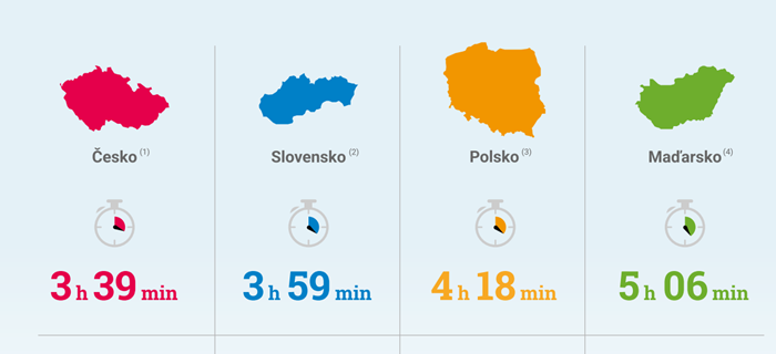 Srovnávací infografiku o sledovanosti TV v zemích V4 si můžete prohlédnout níže.