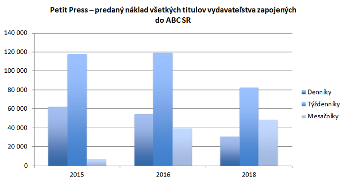 Pozn.: Grafy zohľadňujú stav ku koncu roka, t.j. ak sa akvizícia titulov udiala v priebehu roka, predaný náklad za daný rok je prisúdený novému majiteľovi. Neobsahuje supplementy. Zdroj dát: ABC SR