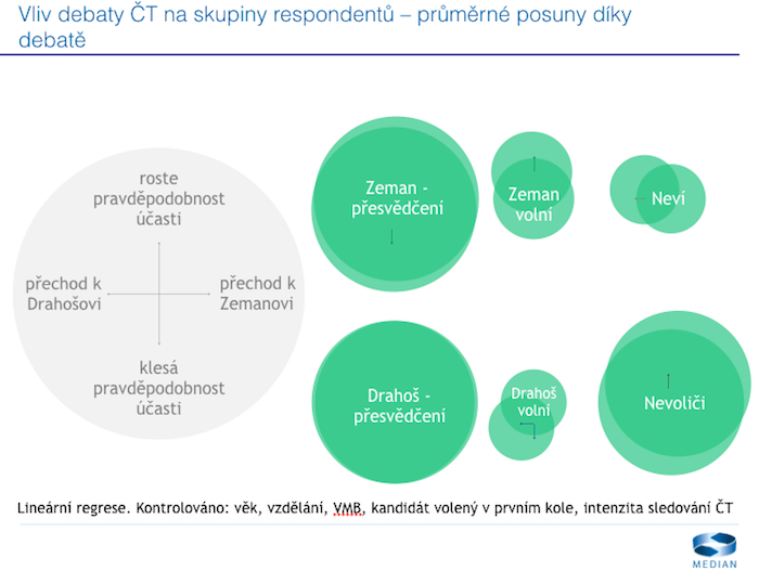 Vliv volebních debat prezidentských kandidátů na rozhodování voličů je známý. Svou důležitou roli hrají jak v zahraničí, tak v tuzemsku. Na dvě televizní volební debaty, v nichž se utkal Miloš Zeman s Jiřím Drahošem, se ve své analýze zaměřila výzkumná agentura Median.