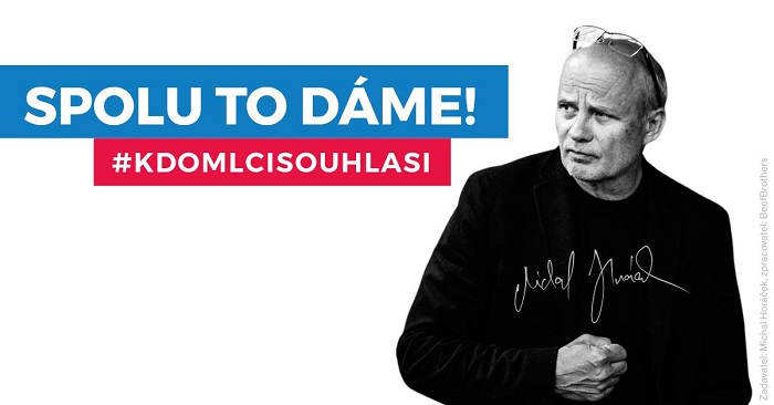 Textař Michal Horáček svou kampaň staví na kontaktu s lidmi a příbězích. Komunikací se prolíná jeho vlastní příběh, prostor získávají ale i lidé, kteří se potýkali s nepřízní osudu. Billboardy využívají slogan „Spolu to dáme“ s hashtagem #kdomlcisouhlasi, podporovatelský vizuál apeluje na sílu lidí a hrdost země. Ve své prezentaci Horáček často používá zavazující „Slibuju“. Vizuálně si pohrává s černobílou kombinací, jež asociuje eleganci a důstojnost, s kontrastní modrou a červenou. Barevnost se odráží i ve volebním spotu, složeném převážně z fotografií vytvořených v průběhu kampaně, kde jsou akcentovány problémy obyčejných občanů i Horáčkova nezávislost na politických či podnikatelských elitách. Na svých internetových stránkách vybízí Horáček k odběru novinek přes Messengera, na Facebooku má 82 691 fanoušků, na Twitteru přes 10,5 tisíc followerů, na Instagramu 1520 sledujících. Rovněž disponuje i sítí dobrovolníků, kteří kontrolují vývěsky úřadů a po krajích prezentují jeho program.