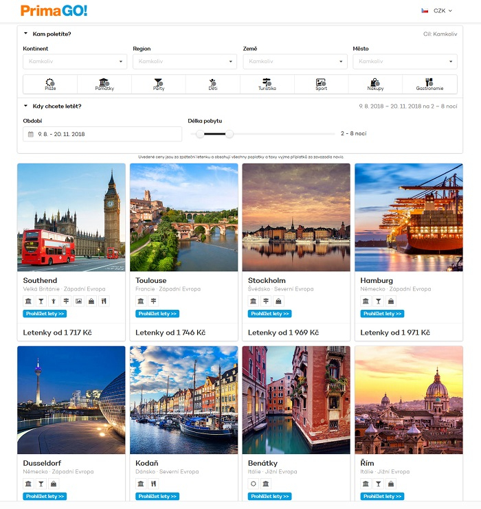 Skupina Prima spustila ve čtvrtek ve spolupráci s Web Shop Fly nový web PrimaGo.cz, který nabízí letenky za garantované ceny do celého světa. Mimo vyhledávání leteckých spojů do jednotlivých destinací bude web fungovat také jako místo inspirace, kam mohou lidé vyrazit za zážitky. Tváří kampaně na web PrimaGo.cz je modelka a moderátorka Iva Kubelková.