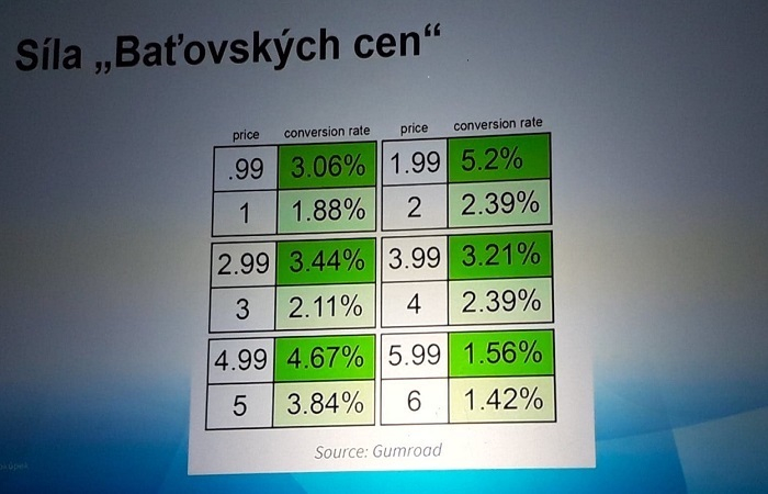 Zajímavý je i princip baťovských cen. Zde vzniká velký rozdíl mezi tím, když se prodává za 1,99 (5,2 %) a za 2 (2,39 %). Zákazník logicky kupuje více nižší variantu, ačkoli je rozdíl velmi malý. Velký rozdíl je například v prodejích výrobků za 989 a 1000.