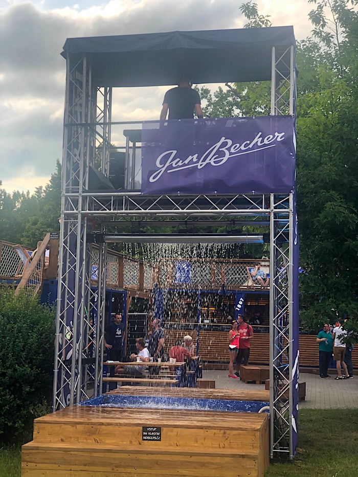 V okolí hotelu bude k dispozici také Becher Zone, kterou tvoří rozsáhlá stavba z recyklovaných kontejnerů s oblou střechou. Pod taktovkou Becherovky zde bude k dispozici stage pro interprety, několik barů, grill i DJský pult, umístěný přímo ve fontáně.
