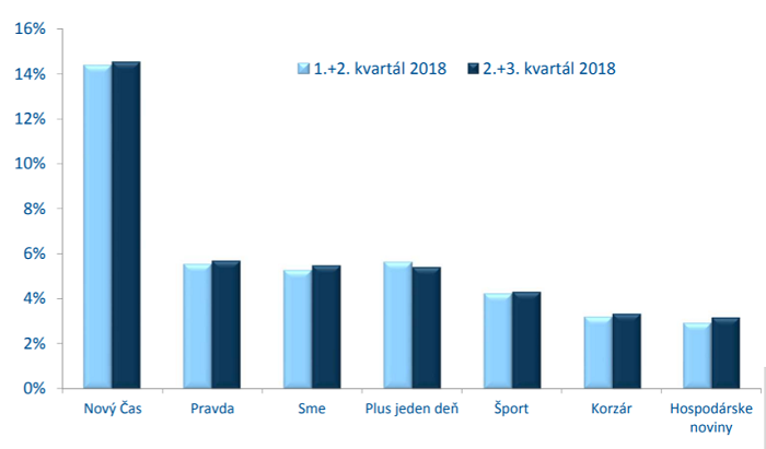 Nejčtenějším listem na Slovensku byl podle nejnovějšího průzkumu společnosti Median SK ve druhém a třetím čtvrtletí Nový čas. Za ním skončily deníky Pravda, Sme a Plus jeden deň.