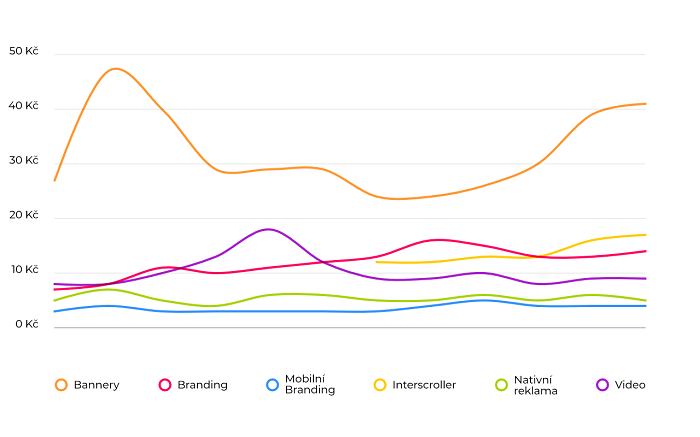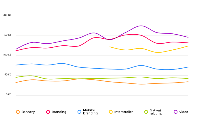Nejvyšší cenu za tisíc zobrazení (CPM) si po celý rok držela video reklama, jejíž průměrná hodnota byla 146 Kč. Pouze v červenci byla přeskočena brandingem, který byl jinak po dobu celého roku druhým nejdražším formátem. Dvojici formátů s nejvyšší cenovkou doplnil nově přidaný interscroller s průměrnou cenou kolem 115 Kč za tisíc zobrazení. Nejlevnějšími formáty zůstaly banner 300x600 a nativní reklama s průměrnou hodnotou pod 50 Kč.