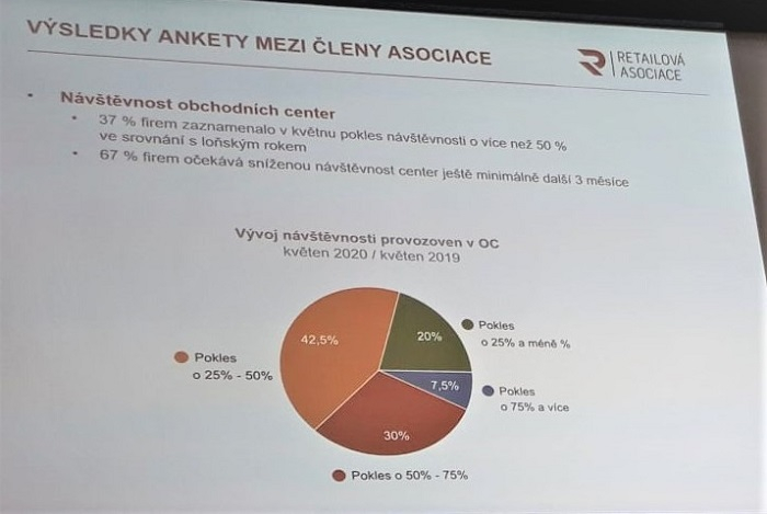 Z ankety mezi členy asociace vyplynulo, že 57 % firem zvažuje v roce 2020 v OC uzavřít některé své prodejny. Nájemci se aktuálně potýkají s výrazným poklesem a 4 z 10 firem zaznamenaly v květnu až 50% propad návštěvnosti ve srovnání se stejným obdobím loňského roku. Polovina firem pocítila v květnu propad tržeb o více než 50 %. Již 40 % firem během dubna a května propustilo téměř čtvrtinu svých zaměstnanců a pětina firem plánuje další propouštění do konce roku 2020. Třetina oslovených firem neměla v době krize možnost prodávat své zboží v rámci e-commerce. Třetina firem, které e-commerce k prodeji zboží využívají, predikuje růst tržeb o více než 25 %.