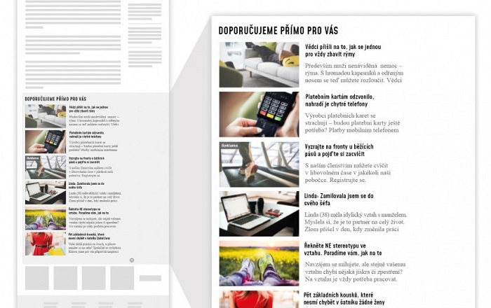 „Box od Seznam.cz pomáhá udržet uživatele u našeho obsahu a také mu nabízí vhodný výběr z textů našeho vydavatelství. Technicky funguje podobně jako výdej programatické reklamy. Vytváří vlastní obsah pro každého uživatele. Při nastavování bych doporučil dát si záležet na identifikaci vhodných tematických oblastí stejně jako na nastavení maximálního stáří textů,” říká vydavatel Jan Šercl za Centu a její Čtidoma.cz. Oceňuje i přizpůsobení boxu layoutu stránky a integrovanou nativní reklamu. Doporučovací box má podle jeho slov tvořit kolem 20 % výnosů z reklamy od Seznamu.