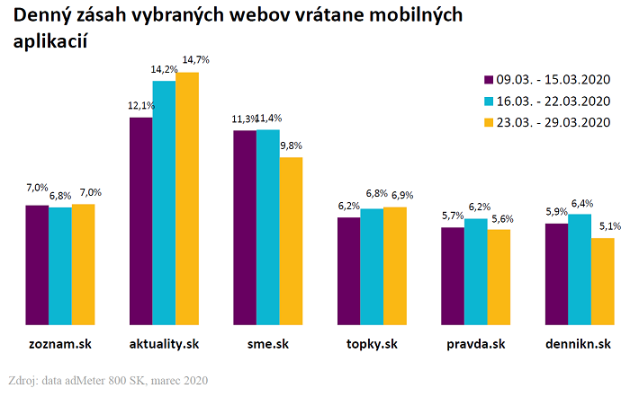 Data vycházejí z měření adMeter, kterého se na Slovensku účastní 800 respondentů. Data byla sbírána v březnu 2020. Tištěná média nejsou součástí měření.
