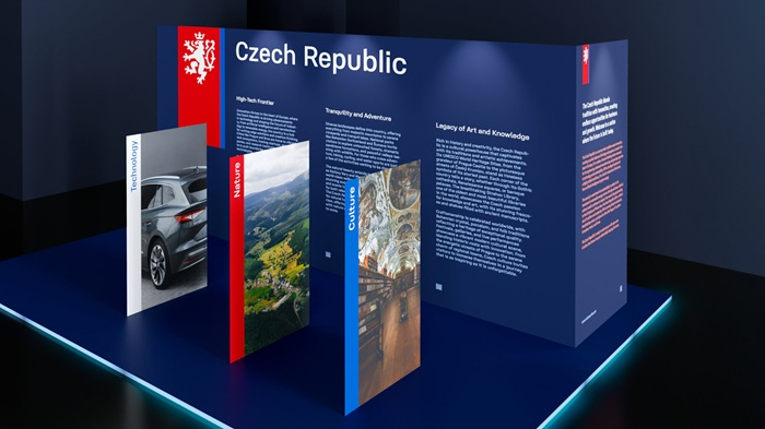 Červený štít, dvouocasý lev a autorské písmo Czechia Sans. Tímto jazykem