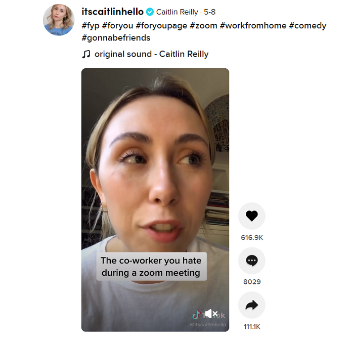Za podrobnější zmínku stojí i třetí nejvýraznější letošní počin na TikToku. Zabodovala parodie pracovní videoporady, čili téma, které by nemuselo být uživatelům aplikace úplně blízké. Ukazuje se ale, že rostoucí popularita TikToku podobné škatulkování značně nabourává.