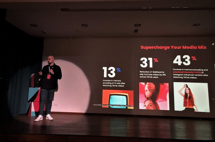 „TikTok se sice označuje jako sociální síť, ale má blíž k zábavním platformám typu Netflixu nebo YouTube. Pro TikTok je úspěch, že na americkém a britském trhu vykazuje delší čas strávený, než kolik uživatelé tráví na YouTube,“ řekl účastníkům setkání Oleh Polovko, partnership manager TikToku pro střední Evropu. Průměrný čas, kteří čeští uživatelé denně na TikToku stráví, představuje aktuálně 80 minut. Už neplatí, že TikTok je platformou pro nejmladší publikum, 80 % uživatelů je starších 18 let.