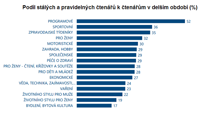 Z pohledu čtenářské loajality jsou na tom nejlépe programové televizní tituly. Podíl pravidelných a stálých čtenářů k celkové čtenosti v delším období u nich přesahuje 50 procent. Vyšší loajalitu mají i sportovní tituly, zpravodajské týdeníky a časopisy pro ženy.