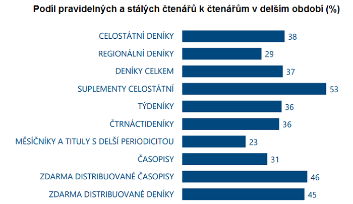 Pokud jde o typ periodika, vykazují tituly zdarma (deníky i týdeníky) vyšší loajalitu než celostátní deníky a regionální deníky. Nejvyšší loajalitu mají podle výzkumu Media projekt suplementy.