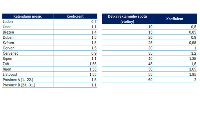 U některých měsíců dochází ke zvýšení koeficientů. Souvisí to s událostmi předpokládající vyšší poptávku. Ke zvýšení koeficientu tak dochází například v březnu díky přesunu Velikonoc na první dubnový týden, a tedy přesunu velikonočních kampaní na březen. Stopážové koeficienty zůstávají nezměněny.