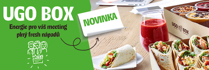 Společnost UGO, provozující na českém a slovenském téměř 80 fresh barů a salaterií, přichází na podzim s novinkou, s níž chce oslovit i firemní zákazníky. Nabízí jim catering do kanceláří v podobě UGO boxů, a to v několika variantách – masové, vegetariánské, kombinované, salátové či dezertní. Nabídku tvoří wrapy, saláty, chia pudingy, jogurtové misky či čerstvý fresh.