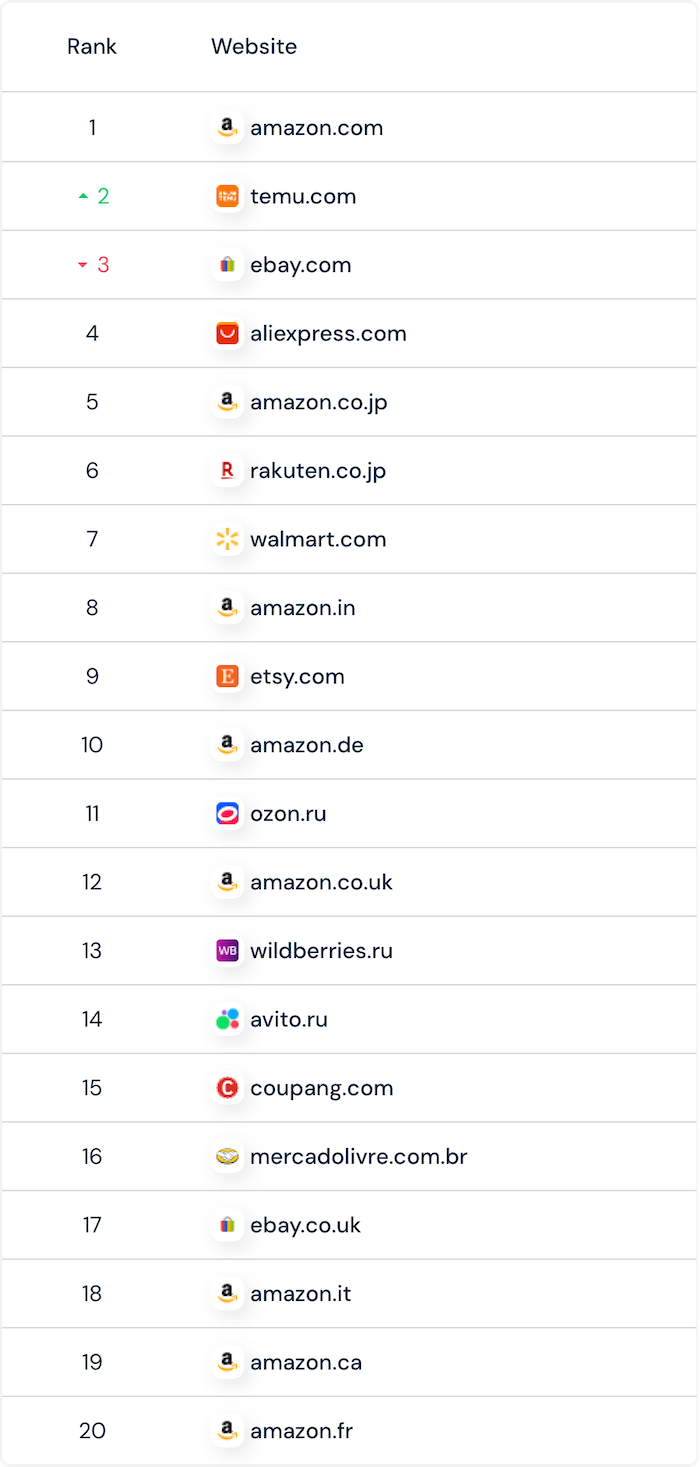 Zajímavá je posilující se pozice čínského Temu, který se podle srovnání SimilarWeb dostal již na druhou příčku nejnavštěvovanějších e-shopů na světě. Ze stříbrného místa sesadil eBay a drží se za prvním Amazonem. Jedná se o jediného hráče v seznamu 20 nejnavštěvovanějších online obchodů na světě, který byl spuštěn v posledním desetiletí.