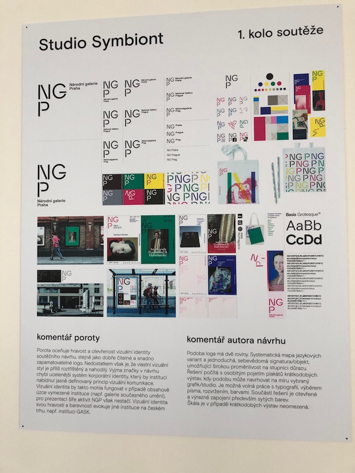 „Naší snahou bylo, aby z každého materiálu bylo cítit, že se jedná o identitu Národní galerie Praha, aby poskytovala široké možnosti, jak s ní pracovat a umožňovala různá řešení pro různé typy výstav,“ popisuje Aleš Najbrt. Spolu s ním se na tvorbě identity podílela Zuzana Lednická, Martin Vácha, Andrea Vacovská a další zaměstnanci jeho studia.