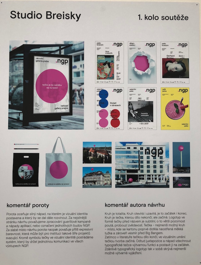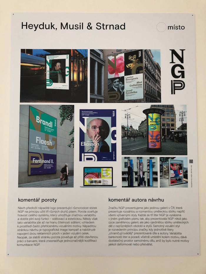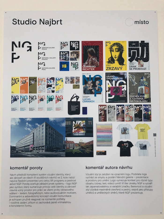 „Návrh Studia Najbrt vnímáme jako komplexní systém komunikace, který nabízí flexibilitu a zároveň jedinečnou vizuální identitu. Logo NGP otevírá prostor pro práci se všemi typy sdělení – textovým, obrazovým i audiovizuálním a umožňuje prezentaci širokého spektra aktivit a umění od starověku po současnost,“ komentuje vítězný návrh odborná porota, ve které společně se zástupci NGP zasedali grafičtí designéři a pedagogové Alan Záruba, Kristýna Fišerová a Tomáš Brousil, a ředitelka Czechdesign Jana Vinšová.