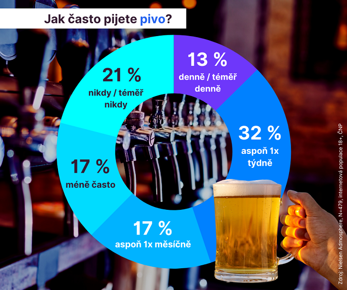 V české internetové populaci je podle výzkumu 79 % konzumentů piva, častých konzumentů je ale o dost méně: 13 % si například pivo dopřává každý den (nebo téměř každý den). Tento podíl je o 6 procentních bodů nižší než před dvěma lety. Alespoň jednou týdně aktuálně pije pivo 32 % lidí, což je srovnatelné se staršími výsledky. Podobný podíl (34 %) si tento nápoj dopřává méně často a nikdy pivo nepije 21 % respondentů.