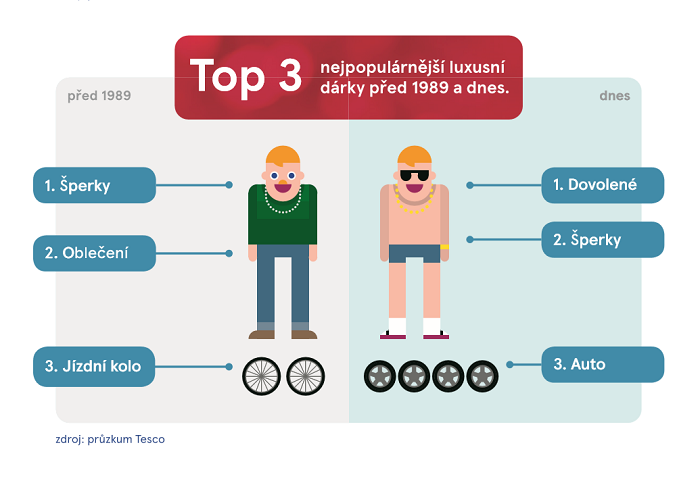 Dříve nejvíce potěšily šperky, jízdní kolo a oblečení, hlavně pak džíny. Za luxusní dárky pak byly považovány i takové věci jako flanelové ručníky, fén, uherák, desky zahraničních umělců nebo průhledné ovocné mýdlo. Dnes jako luxusní vánoční přání Češi berou exotické dovolené, letenky nebo wellness pobyty, hned za nimi jsou šperky a na třetí příčce automobily. Za ten nejúžasnější dárek ale Češi považují i samotný čas strávený s rodinou nebo ručně vyráběné věci od svých blízkých.