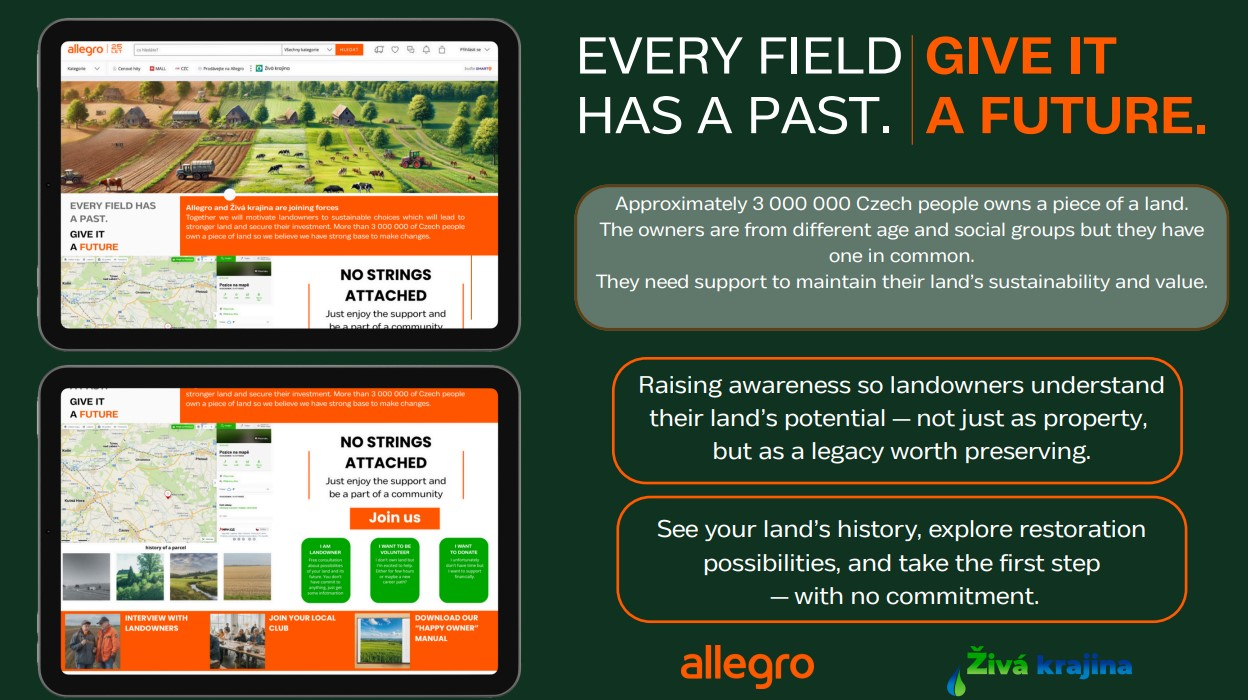 Soutěžící měli navrhnout digitální kampaň, která motivuje vlastníky zemědělské půdy k aktivní péči o půdu a také k obnově krajiny, aniž by se museli obávat složité byrokracie. Kampaň měla zajistit sběr kontaktů na vlastníky půdy, změnit vnímání vlastnictví zemědělské půdy jako pasivního aktiva a vytvořit komunitu zapojených vlastníků. Návrh je určen pro neziskovou organizaci Živá krajina, která propojuje vlastníky půdy s obcemi usilujícími o udržitelná adaptační opatření.