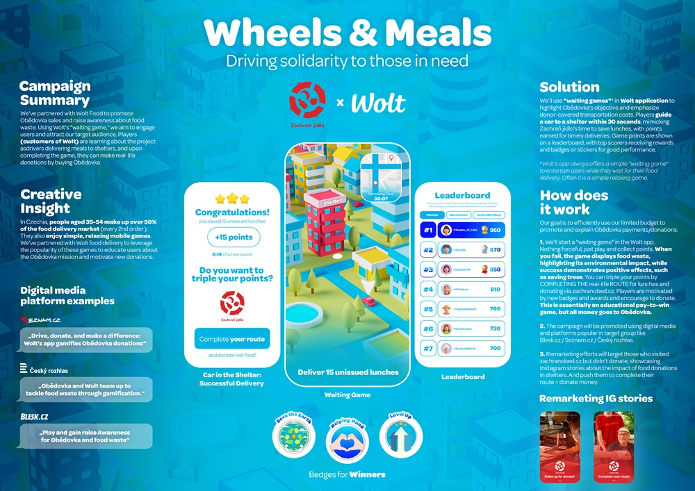 - V kategorii Digital bodovala dvojice z DDB Prague ve složení Vojtěch Vaník a Danila Shlenov. Za úkol měli stejně jako další soutěžící v této kategorii navrhnout kampaň pro pro projekt Zachraň oběd.