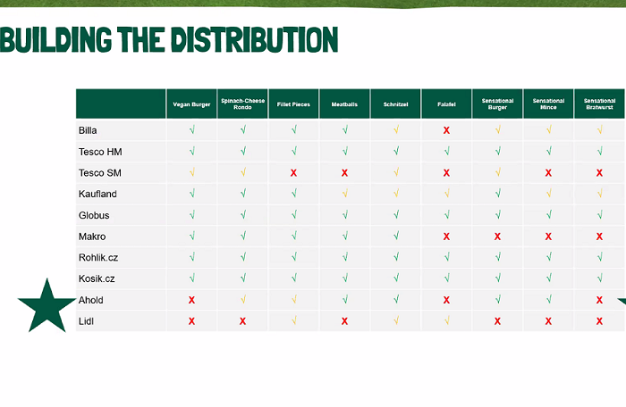 Nyní má firma v nabídce celkem devět produktů, většinu z nich je možné koupit ve velkých řetězcích, jako je Globus, Tesco, Makro, Kaufland a dalších, a zároveň i online na Rohlik.cz nebo Košík.cz. Nejvíce vsází na burgery, kdy od října dává na trh vylepšenou variantu Sensational burgeru 2.0.