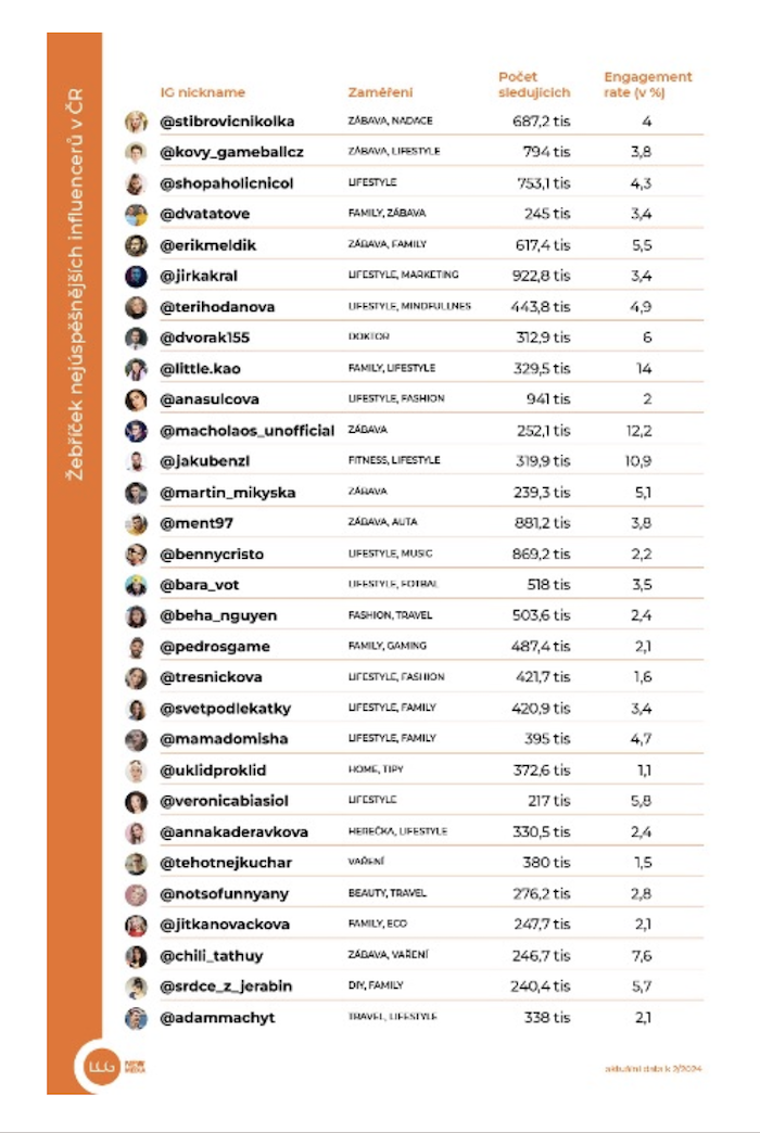 # Instagram # influencer # žebříček # LCG Media # sledující # engagement rate # LCG