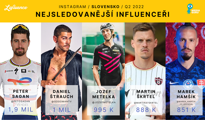# Instagram # Leoš Mareš # Lafluence # žebříček # Petr Čech # databáze # infuencer # Těhotnej kuchař # Dominik Feri # Jan Macák # Mária Hutirová # Silvie Mahdal # Peter Sagan # Lucia Javorčeková
