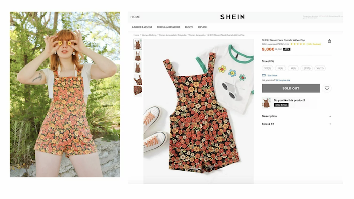 Shein, jenž byl založen v Číně v roce 2008 původně jako e-shop specializující se na svatební šaty, dnes oslovuje spotřebitele šíří sortimentu, trendy oblečením a nízkými cenami. Denně vystaví až šest tisíc nových modelů. Jakožto „real-time fashion“ řetězec se svými kousky snaží sledovat jakýkoliv trend, který se ve světě objeví, vyrábí je rychle a v malém počtu, jenž podle prodejů navýší.