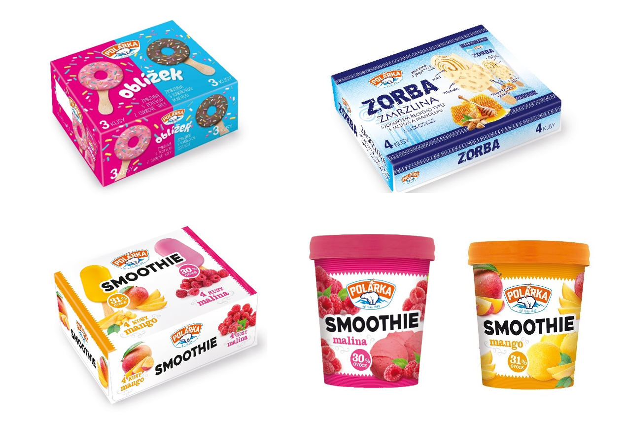 Nové balení tak dostaly ovocné zmrzliny Smoothie mango a Smoothie malina. Rovněž dochází k přebalení zmrzliny inspirované řeckým jogurtem Zorba – v příchutích s medem a mandlemi nebo lesním ovocem. Tyto zmrzliny budou nově dostupné i v kelímku. V rodinných baleních budou také k dispozici nanuky, a to Smoothie mango a malina, Zorba s medem a mandlemi i Oblížek cukrový a kakaový.